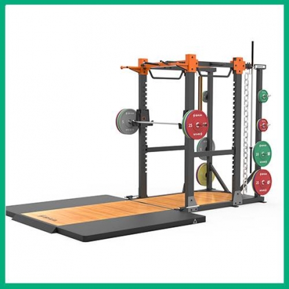 功能区:杠铃片整组挂架、万向炮筒、举重杆保护架、单杠架、双杠架、大飞鸟功能