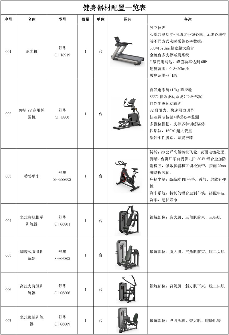 1.多宝电竞V9智能跑步机SH-T8919*5台-独立仪表-简洁大气,全新外观设计,健康运动新选择;心率监测功能,可通过手握心率、无线心率带等不同方式实时采集心率数据;580*1570mm超宽超大跑台-跑感舒适,跑台整体安全稳定;全跑台多支撑减震平台,保证跑台超强支撑力,达到180kg支撑,满足专业健身房需求。F级商用马达-超强马达,AC 3.0HP 交流,峰值功率达到6HP,F级商用品质。速度范围达到0.8-20km/h;V9跑步机可实现跑台扬升功能,坡度范围-3~15%,满足客户不同的锻炼需求。