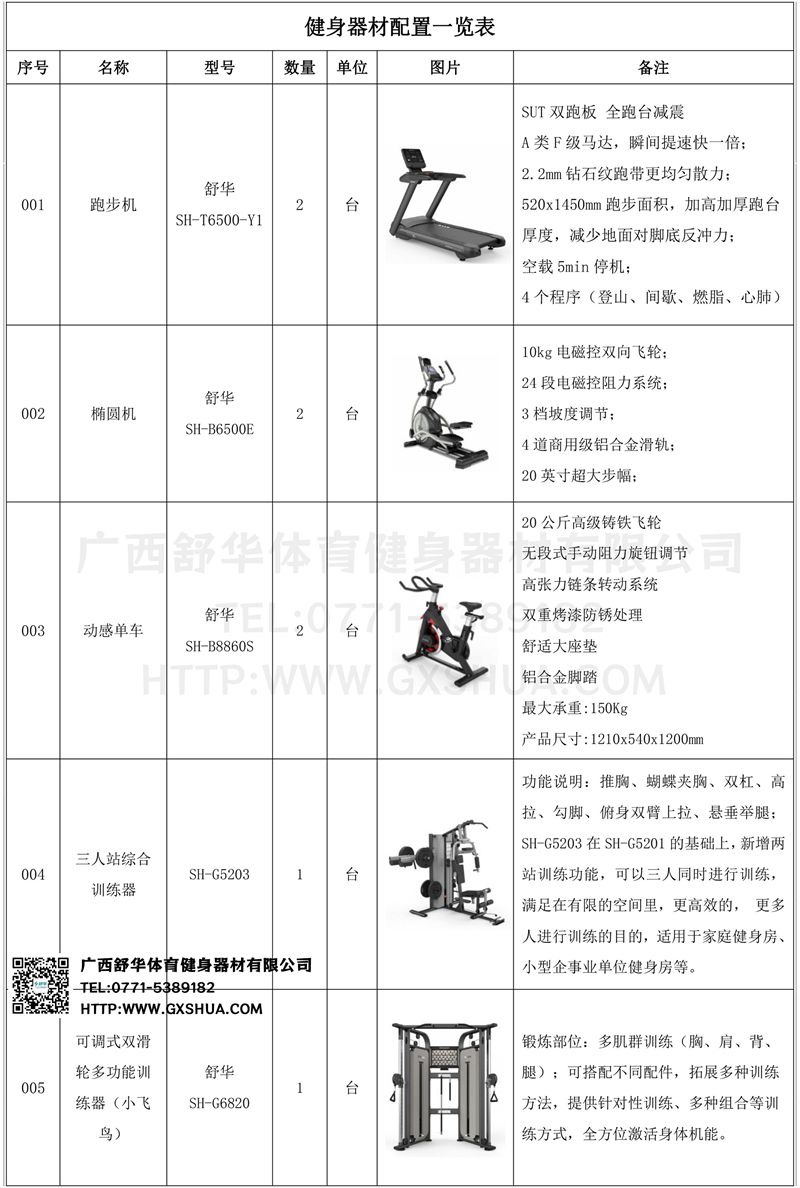 1.多宝电竞X5高端跑步机SH-T6500*3台-新X5拥有740mm的宽敞跑台,520mm宽跑带,跑步时更畅快无拘束。搭载SUT全跑台减震系统,针对跑步冲击区进行前、中、后以及双侧全方面避震,有效分散跑步时对跑者膝盖和踝关节的冲击,跑步也能更护膝。采用T18MM跑板+5MM减震棉+T12MM双层专利跑板减震结构设计的韧性跑板,承重力强,回弹舒适,带来缓震护足的舒适跑步体验。搭载了一颗持续马力2.5HP,峰值马力5.0HP的强劲动力马达,能为跑步提供源源不断的动力,让跑步流畅不卡顿。跑步机的速度可达18km/h,能够满足更专业的跑步锻炼需求。