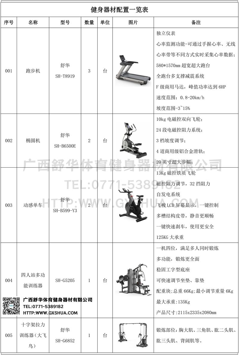 1.多宝电竞V9跑步机SH-T8919*3台-580*1570mm超宽超大跑台-跑感舒适,跑台整体安全稳定;全跑台多支撑减震平台,保证跑台超强支撑力,达到180kg支撑,满足专业健身房需求。F级商用马达-超强马达,AC 3.0HP 交流,峰值功率达到6HP,F级商用品质。速度范围达到0.8-20km/h;V9跑步机可实现跑台扬升功能,坡度范围-3~15%,满足客户不同的锻炼需求。