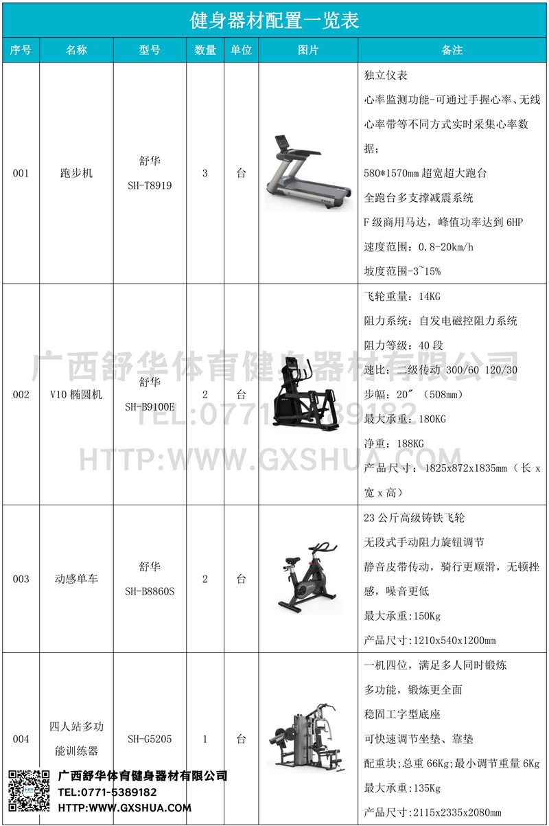 1.多宝电竞V9跑步机SH-T8919*3台-独立仪表-简洁大气,全新外观设计,健康运动新选择;心率监测功能,可通过手握心率、无线心率带等不同方式实时采集心率数据;580*1570mm超宽超大跑台-跑感舒适,跑台整体安全稳定;全跑台多支撑减震平台,保证跑台超强支撑力,达到180kg支撑,满足专业健身房需求。F级商用马达-超强马达,AC 3.0HP 交流,峰值功率达到6HP,F级商用品质。速度范围达到0.8-20km/h;V9跑步机可实现跑台扬升功能,坡度范围-3~15%,满足不同的锻炼需求。