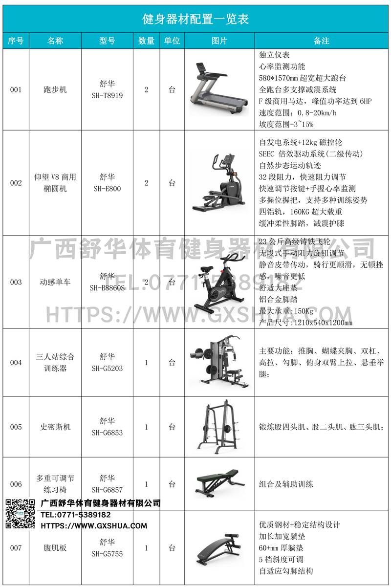 1.多宝电竞V9跑步机SH-T8919*2台-独立仪表-简洁大气,全新外观设计,健康运动新选择;心率监测功能,可通过手握心率、无线心率带等不同方式实时采集心率数据;580*1570mm超宽超大跑台-跑感舒适,跑台整体安全稳定;全跑台多支撑减震平台,保证跑台超强支撑力,达到180kg支撑,满足健身房需求。