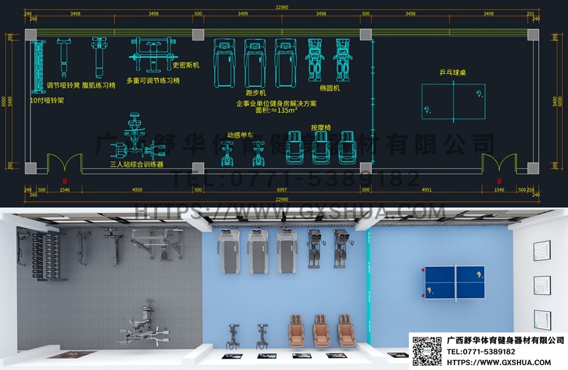 高效空间,活力办公:135m²企事业单位健身房 布局设计方案